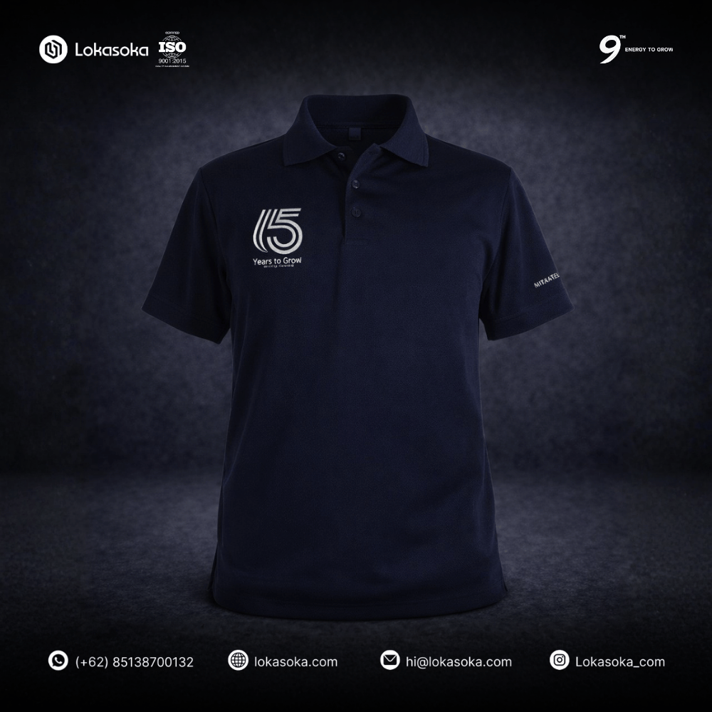 Bahan Dry fit | Ukuran S-2XL | Minimal Order 24 Pcs | Banyak Opsi Warna | Custom Printing Logo | Kerah menggunakan kain, tidak menggunakan RIB.