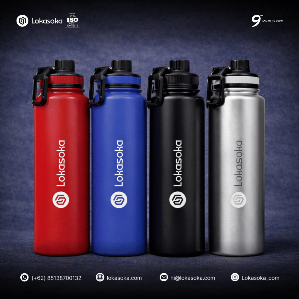 Bahan Stainless Steel | Kapasitas 1000 ml | Banyak Opsi Warna | Model Sports Jumbo | Custom Logo UV/Sablon/Grafir.