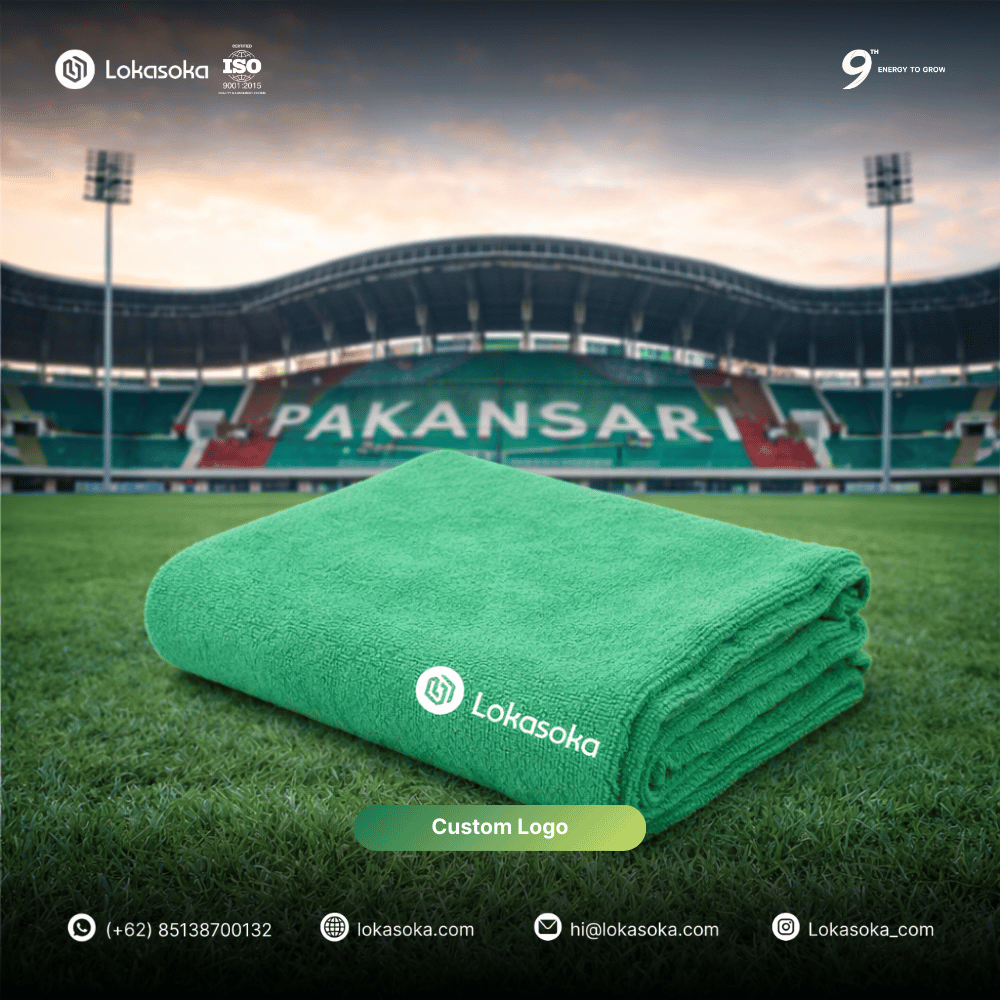 Handuk microfiber memiliki daya serap tinggi, cepat kering, dan ringan dibawa. Produk ini sangat berguna untuk olahraga seperti gym, yoga, lari, atau futsal. Jika diberi bordir nama komunitas, nilainya akan terasa lebih eksklusif.