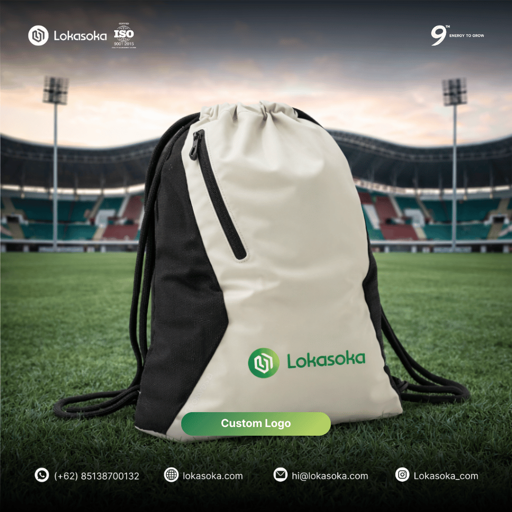 Tas serut praktis untuk membawa botol minum, handuk, atau perlengkapan kecil lainnya. Desainnya ringan dan mudah dilipat, sehingga cocok untuk event olahraga skala besar. Sport bag dengan logo komunitas juga berfungsi sebagai media promosi berjalan.