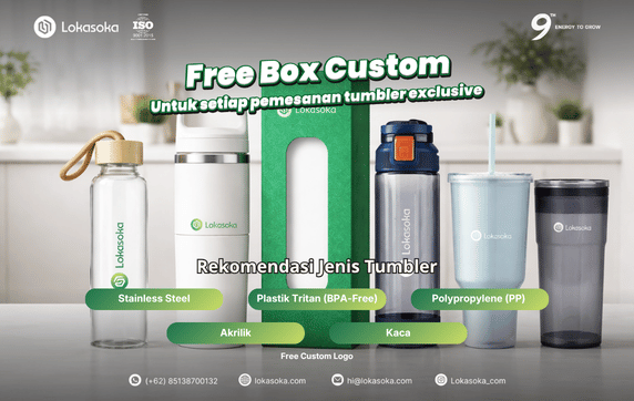 Kalau Anda sedang mencari tumbler sport custom dengan pilihan bahan food grade, baik untuk kebutuhan event, corporate gift, maupun merchandise, Lokasoka bisa bantu menyesuaikan dengan kebutuhan Anda.