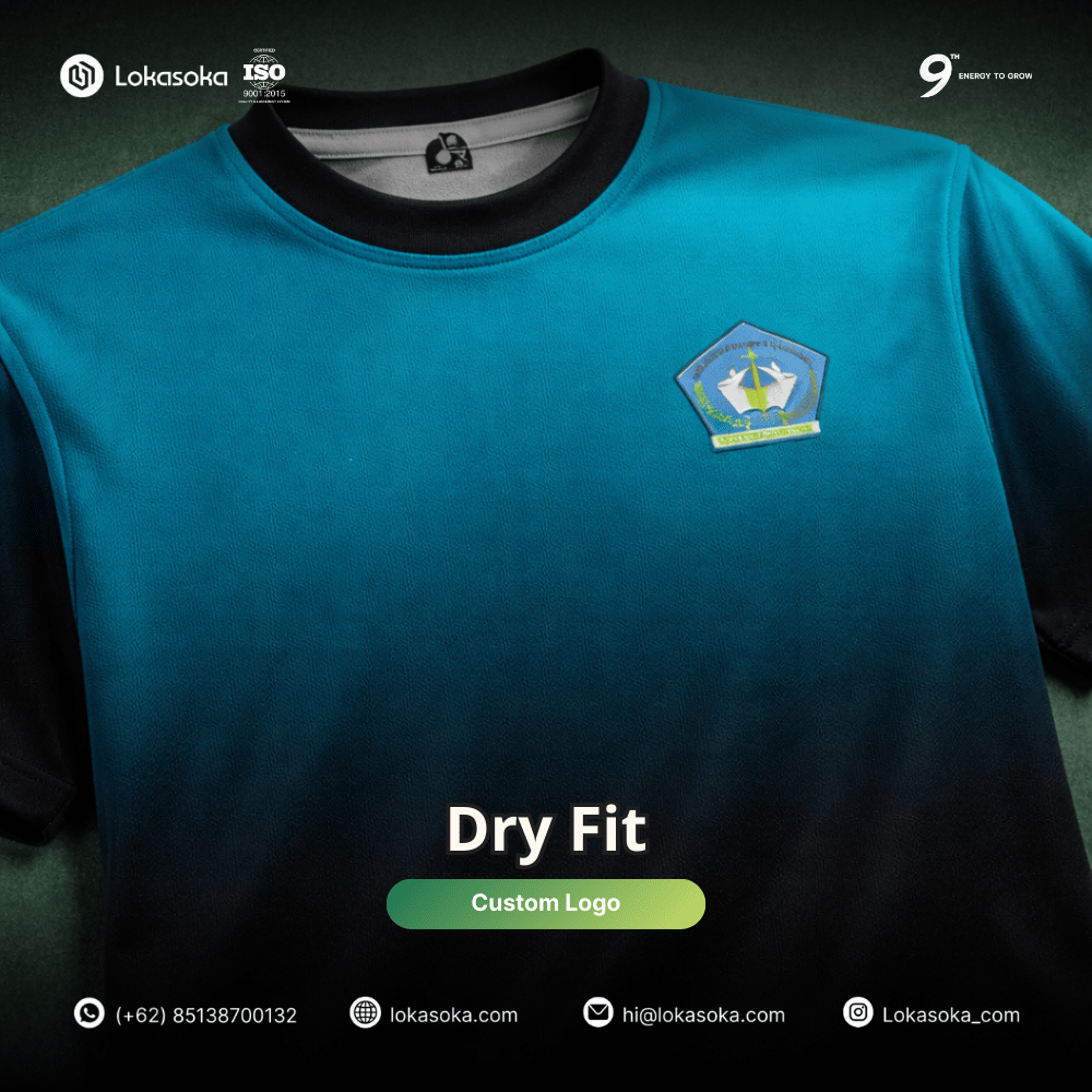 Dry fit adalah bahan lain yang tak kalah populer untuk kaos olahraga karena memiliki kemampuan menyerap dan menguapkan keringat dengan lebih cepat.