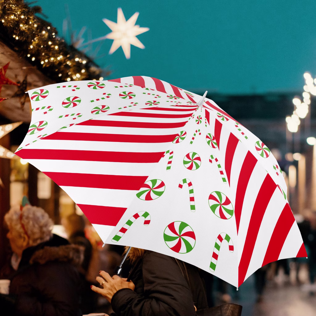 Misalnya, payung lipat merah dengan detail hijau, atau payung golf putih dengan aksen emas di bagian pegangan. Warna khas Natal akan langsung membuat hadiah terlihat tematik dan spesial.