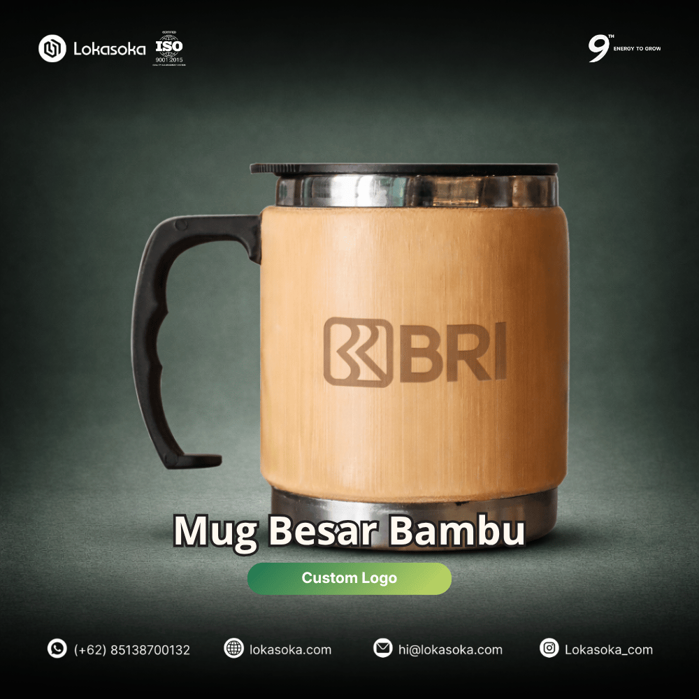 Kalau ingin souvenir yang lebih santai dan terasa “dekat” dengan keseharian, Anda bisa memilih mug bambu.