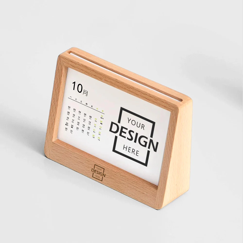 Sliding Wooden Calendar cocok digunakan sebagai kalender meja custom untuk perusahaan kreatif atau startup yang ingin tampil modern dan berbeda.