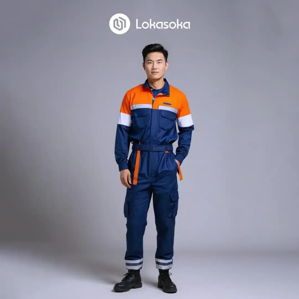 Lokasoka menyediakan berbagai pilihan custom seragam kerja lapangan yang dapat disesuaikan dengan kebutuhan perusahaan Anda, mulai dari desain, bahan, hingga penempatan logo.