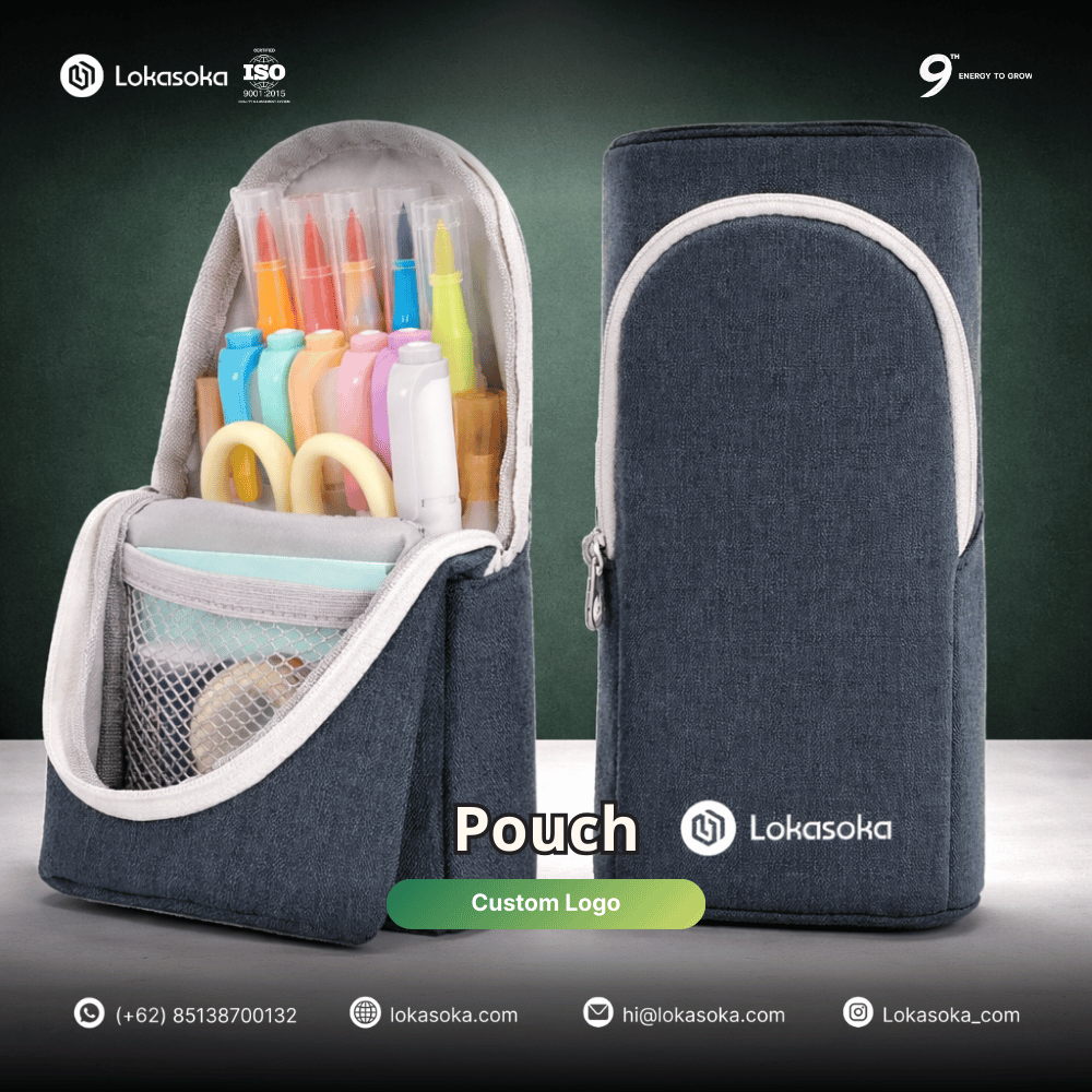 Pouch membantu siswa menyimpan berbagai alat tulis agar tetap rapi di dalam tas. Dengan desain custom yang menampilkan identitas sekolah, pouch bisa menjadi perlengkapan yang menarik sekaligus bermanfaat. Selain digunakan di sekolah, pouch juga sering dipakai saat belajar di rumah atau mengikuti kegiatan lain.