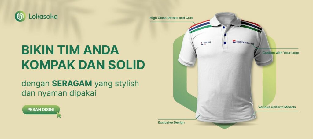 Jika Anda berencana membuat seragam kerja baru, Lokasoka menyediakan berbagai jenis merchandise, yang dapat disesuaikan dengan kebutuhan Anda. Hubungi nomor WhatsApp Admin Lokasoka untuk mengetahui berbagai info menarik lainnya.