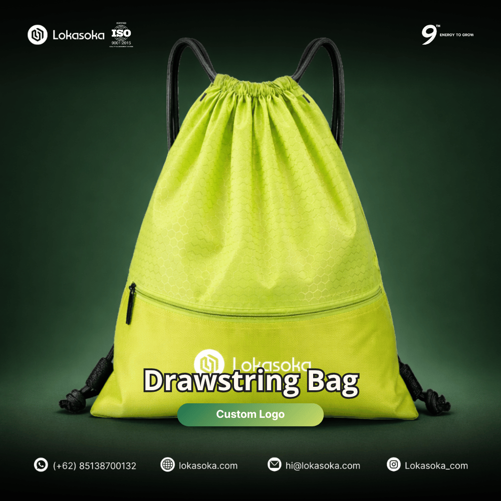 Selain itu, drawstring bag juga lebih hemat untuk produksi dalam jumlah banyak, sehingga cocok untuk event sekolah atau kampus dengan peserta yang cukup besar.