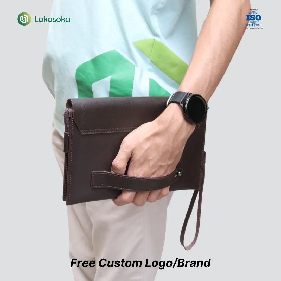 Tas pouch terbuat dari kulit premium dengan banyak partisi dan slot kartu.